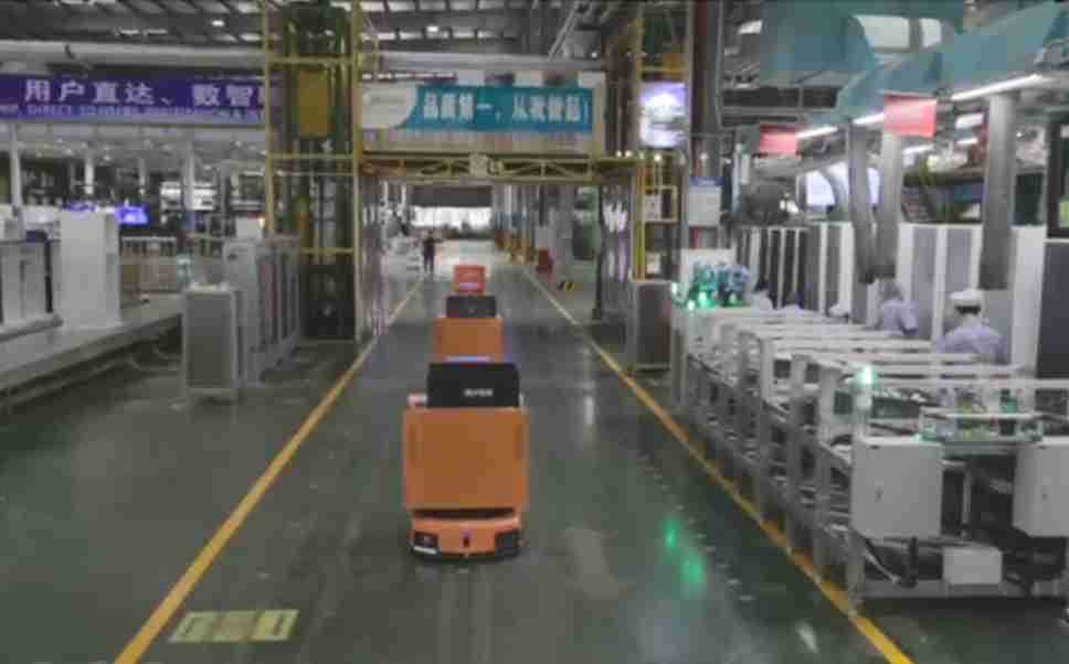 为车载冰箱物流配送打造的智能解决方案,,包含产中物流通过潜伏举升AMR搬运至线边,,产后成品物流智能仓储,,,,流程包含产中物流智能齐套入库,,线边安灯叫料AMR智能配送至线边,,,,成品入库、、、、出库,,,,通过无人堆高车机器人,,,智能仓储管理替代人工作业管理,,,,实现更高存储、、、、更高效率、、、、更具柔性化的解决方案。。。